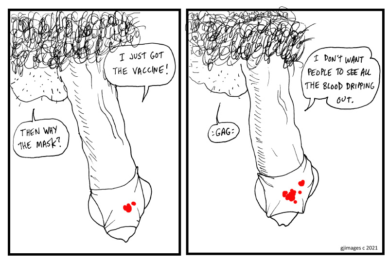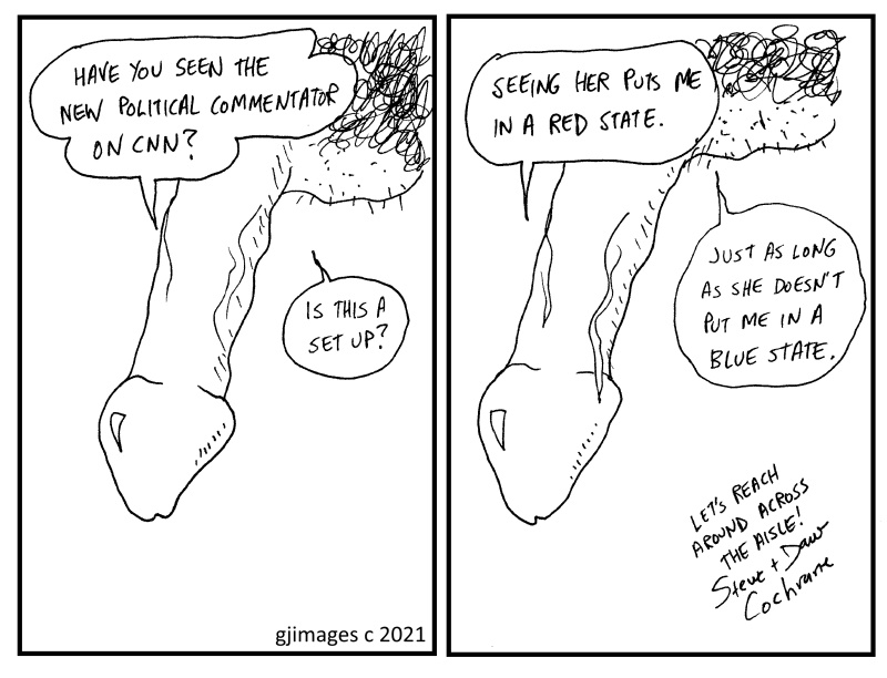 You see Louie and his new friend are the current front runners for the presidency. Just like aforementioned candidates, they are incontinent and wear big baggy diapers. Like Louie we’d all like to crawl away from the current climate into the next strip. Sadly, just like America, the next strip over happens to be a very special panel of Cock ‘N’ Balls!