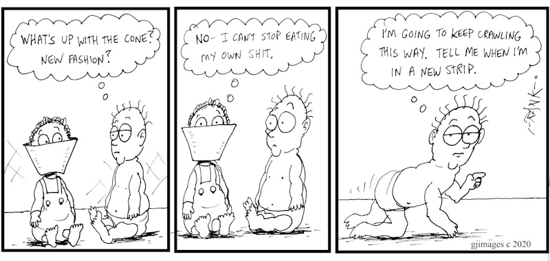 What at first glance is yet another Baby Louie poop strip becomes much more insightful when you realize that the author “Frink” is possibly the greatest political cartoonist since Nast(y), Hoest, or Trudeau.