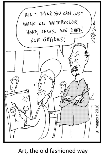 Jebus looks like he’s painting a touching Family Circus as drawn by “Billy.” If that’s his real name.