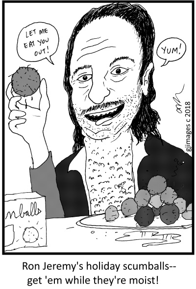I’d say Squiggles has a problem with Ron Jeremy. Butt width a star this luminescent, this is not a problem. Now go out and enjoy your moist Holiday Scumballs topped off with some Raunch Dressing.